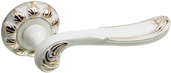 / Дверная ручка на круглой розетке LD 314 WGP белая эмаль с золотом